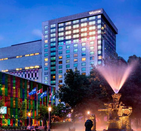 Situé dans le Vieux-Montréal, à quelques pas du Palais des congrès, Le Westin Montréal propose des aménagements modernes, y compris une piscine intérieure et une salle de sport, des chambres spacieuses dotées du Wi-Fi gratuit, des surmatelas et des salles de bain en marbre. Le restaurant gaZette sur place propose un menu alléchant et des plats pour emporter. Bon nombre des attractions les plus fascinantes de Montréal se trouvent à distance de marche, y compris la basilique Notre-Dame, les rues pavées de pierre du quartier historique à l’allure parisienne et le Vieux-Port. Un stationnement avec service de voiturier est disponible, moyennant des frais supplémentaires. Cliquez ici pour obtenir un code promotionnel et accéder au tarif préférentiel réservé aux participantes et participants au Sommet.